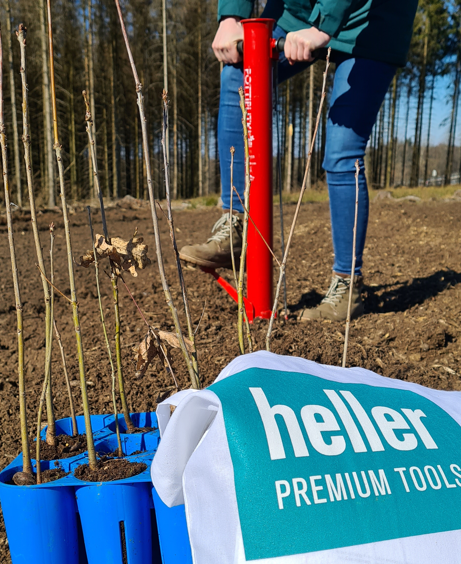 Forest fires, droughts, floods and hurricanes: the consequences of climate change are visible all over the world and are becoming increasingly clear. Accordingly, the topic of sustainability is more relevant than ever before - also for Heller. To contribute to climate protection, we support the PLANT-MY-TREE organisation with tree donations. Trees not only serve as erosion protection and as a habitat for various animals and plants, but they also reduce the amount of CO2 in our air. That is why they are particularly valuable in counteracting climate change and bringing the ecosystem back into balance. The organisation PLANT-MY-TREE takes care of the reforestation of forests all over Germany. Our team planted the donated trees themselves and sowed the Tree of the Year, the copper beech, as well as many oaks.