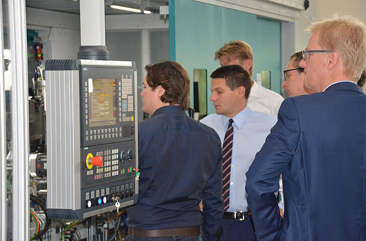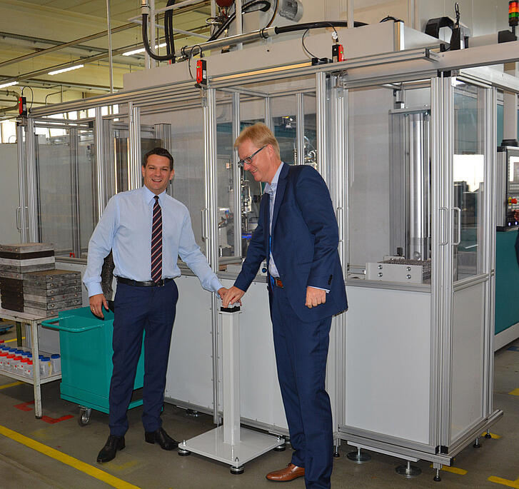 When Philipp Haindl, Managing Director of the Heller shareholder Serafin, and Heller Managing Director Jörg Frommeyer pressed the start button together, they gave the official starting signal for the fully automatic machining center, one of the most modern of its kind in the world. At Heller, we are very happy about this investment, which completely opens up new capabilities for the production of multi-flute cutters at the company.