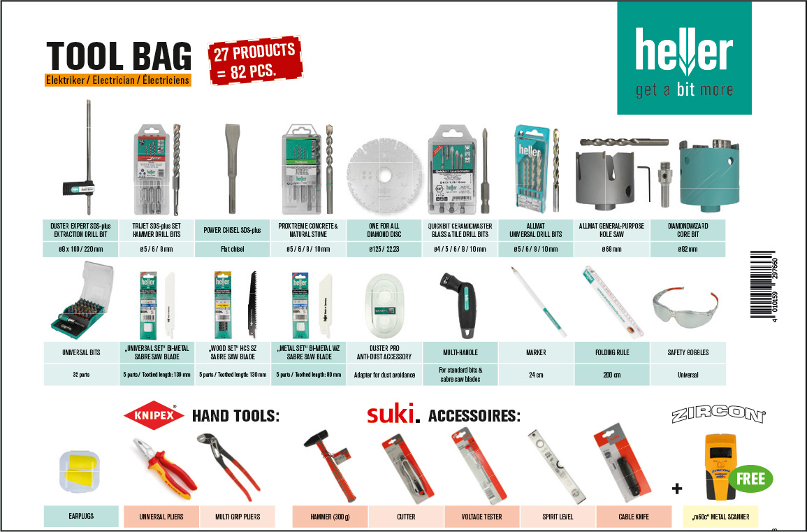 Je 10 bestellter Werkzeugtaschen erhalten Sie ein Exemplar Ihrer Wahl gratis dazu. Dies wird bei der Bearbeitung Ihrer Bestellung berücksichtigt.